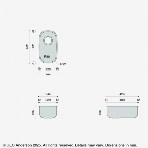- Internal bowl size: 220x400x160mm