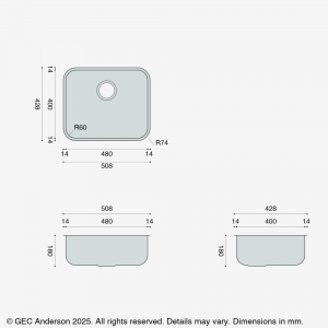 The BE55 is one of the GEC Anderson® standard range of individual stainless steel sinks.