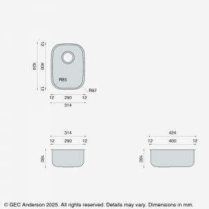 The T29 is one of the GEC Anderson® standard range of individual stainless steel sinks.